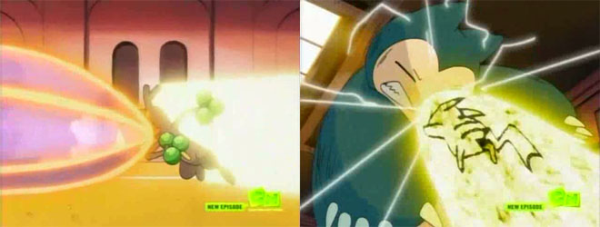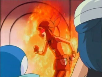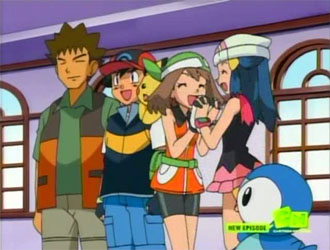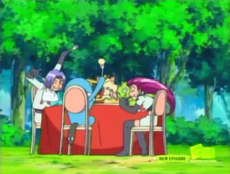 .....which impresses May! Maybe they really HAVE changed? Dawn says now isn't the time to be impressed, and then Brock spots the Ice Box and they realise not all the food is lost yet. Ash and Brock prepare to fight Team Rocket, but Dawn and May want their shot, sending out Glaceon and Buneary which make short work of Team Rocket, locking them into a giant Ice Ball and sending it blasting off again, though Meowth and James are happy at least, their bellies are still full!
