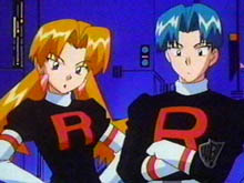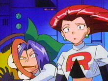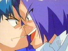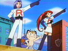 Remember the creepy trilogy with that scary psychic chick? Well this one comes pretty close to matching it. Upon arriving on an Island, Ash, Misty and Tracey (boy, he do be chubby/sexy) discover some trainers running in fear from their Pokemon. Ash sends Pikachu to the rescue but suddenly Pikachu is blasting Ash and running away, joined by an angry Togepi. Totally shocked by this unprecedented turn of events, Ash soon discovers this is happening all over the island and no one knows why. Enter Team Rocket. Jesse, James and Meowth are arguing (as usual) and Meowth scratches their faces (as usual) and Jesse gets very pissed off (as usual) but before the usual Meowth abuse can start, he drops to all fours, meows and then rushes off. Perplexed, Jesse and James follow him and discover Butch and Cassidy, although James mistakenly calls him Botch instead. In an absolutely hilarious scene brimming over with sexual tension on all sides, James and Butch and Jesse and Cassidy attempt to say their almost identical mottos, faces thrust against the others with each line (although this is only conjecture and not proven fact like our other theories, we believe Jesse and Cassidy dabbled in a relationship in the past, a relationship which Jesse broke off. Although willing to experiment, Jesse is definately heterosexual....... mostly - she just constantly falls for men who are totally wrong for her, e.g The Astounding Mandy - and Cassidy has always resented her for this). It seems a freaky Drowzee, who has a PHD in Boogeying Down, is psychically controlling the Pokemon (which explains why Officer Jenny's Gastly is unaffected) and Jesse and James find themselves beaten up by thier own Pokemon (Weezing actually looks cool!) and then patched up by Team Toy Boy... which results in James being totally dominated by Misty (poor James). He asks her not to be so roungh and after a scowling says he'll be quiet. We wonder how often he's been in that situation. Avoiding the usual bullshit sappy ending (by the way, what's with sappy Misty breaking down and crying? what the hell has happened to the tough little redhead we knew and loved!?!) Ash has to trick Pikachu into blasting Drowsee's equipment after Jesse (who is, as we said, mostly heterosexual) makes a come on to Officer Jenny, who blushes and poses. Drowzee attacks Team Toy Boy and Team Rocket, who are protected by a steadily weakening Gastly, and that funny little egg thing Togepi actually does something, deflecting Drowsee's metronome with one of it's own and allowing Team Toy Boy to take the victory. They try to give Jesse and James a medal, but they can't reconcile the concept of being rewarded for doing something right, and take off before it can be given to them.